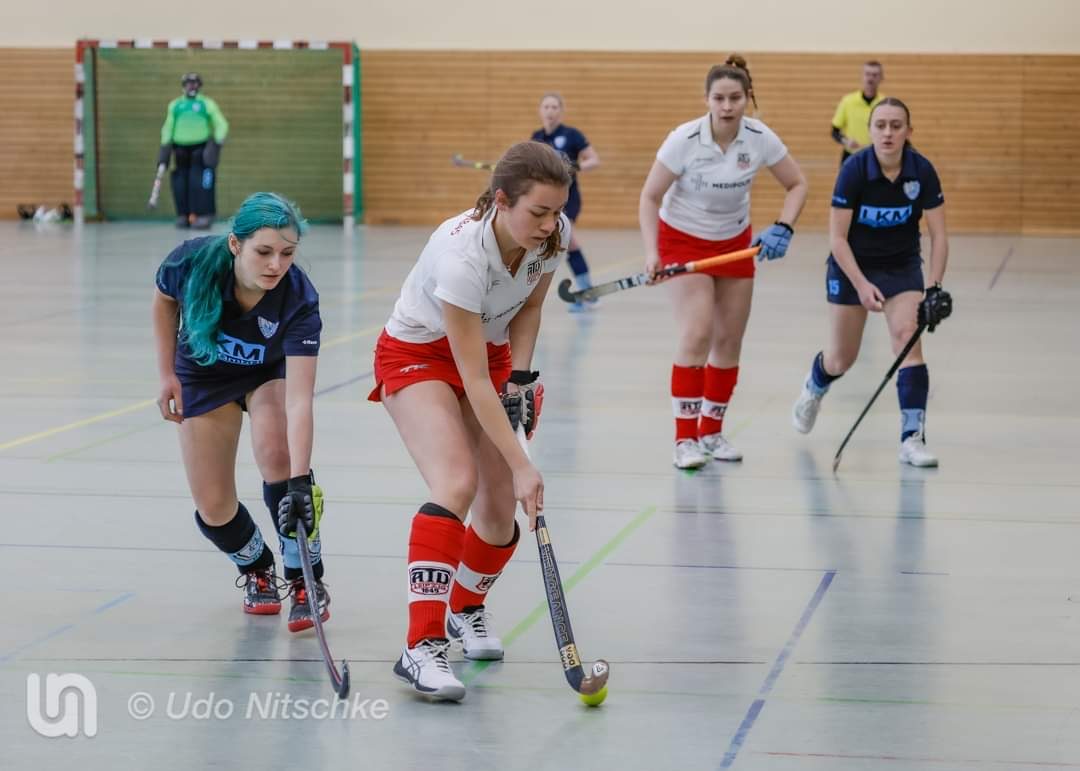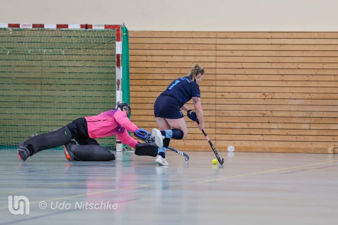 Ansage von Coach Jannik zur ersten Viertelpause – genau so, weiter so! Wir pushten weiter. Thalli machte in der 22. Minute ihr Tor. Danach klingelte es wieder im Kasten – diesmal in unserem. Wir wurden unachtsam aufgrund fliegender Eckmasken und verloren dadurch den Blick zum eigentlichen Geschehen. 4:1. Jule fand den Gegentreffer nicht so geil und gab eine Minute darauf die Antwort – 5:1. Halbzeit. Aufatmen. Energie holen. Positive Worte vom Trainer abholen.