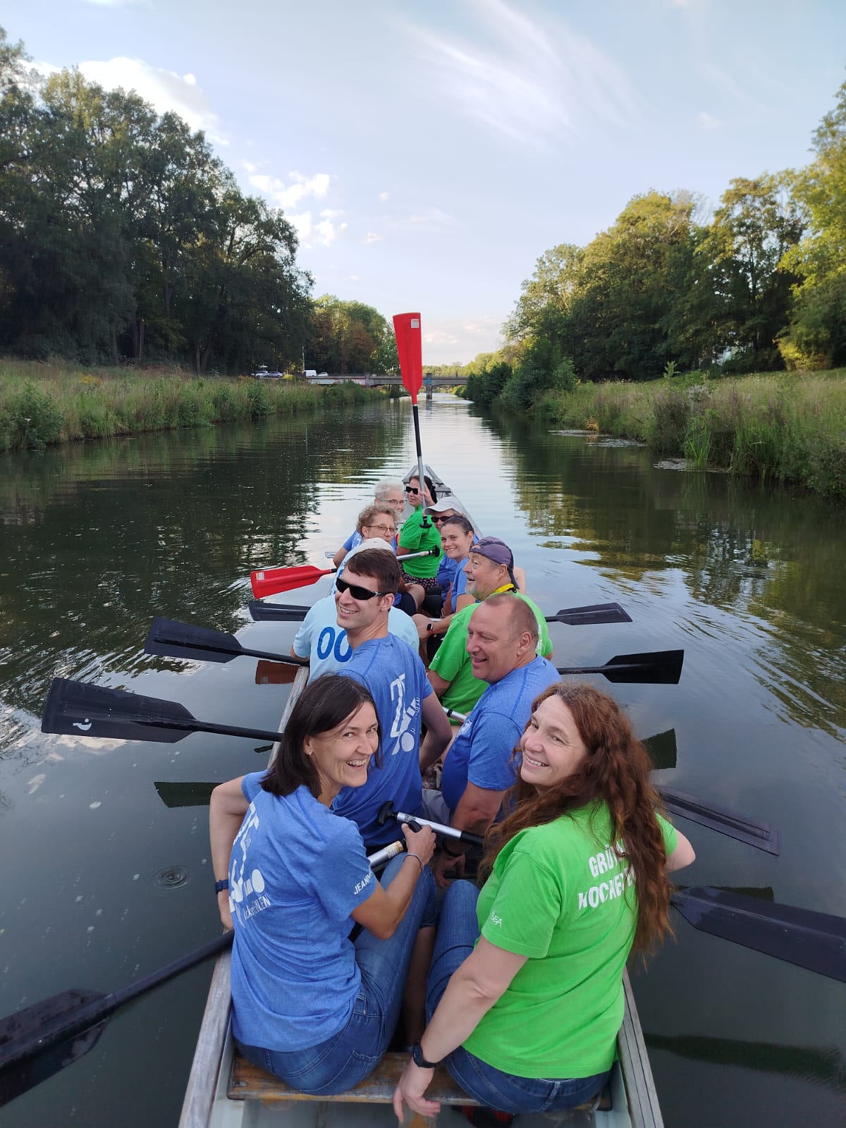 Zwei Stunden machten unsere Eulen Leipzigs Gewässer unsicher. Am Ende der Fahrt übernahm Hockeyeule Oli probeweise das Steuer. Naja sagen wir mal so: Man hat gemerkt was passiert, wenn man Männern das Ruder überlässt 😉