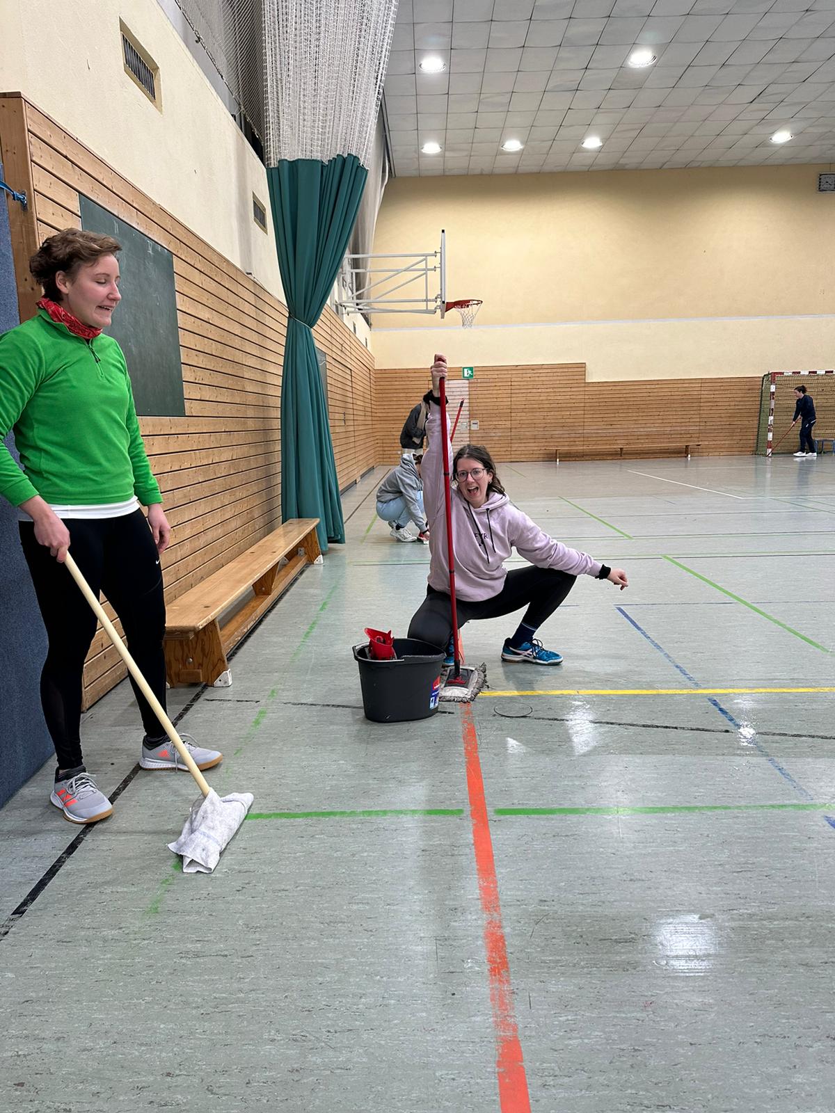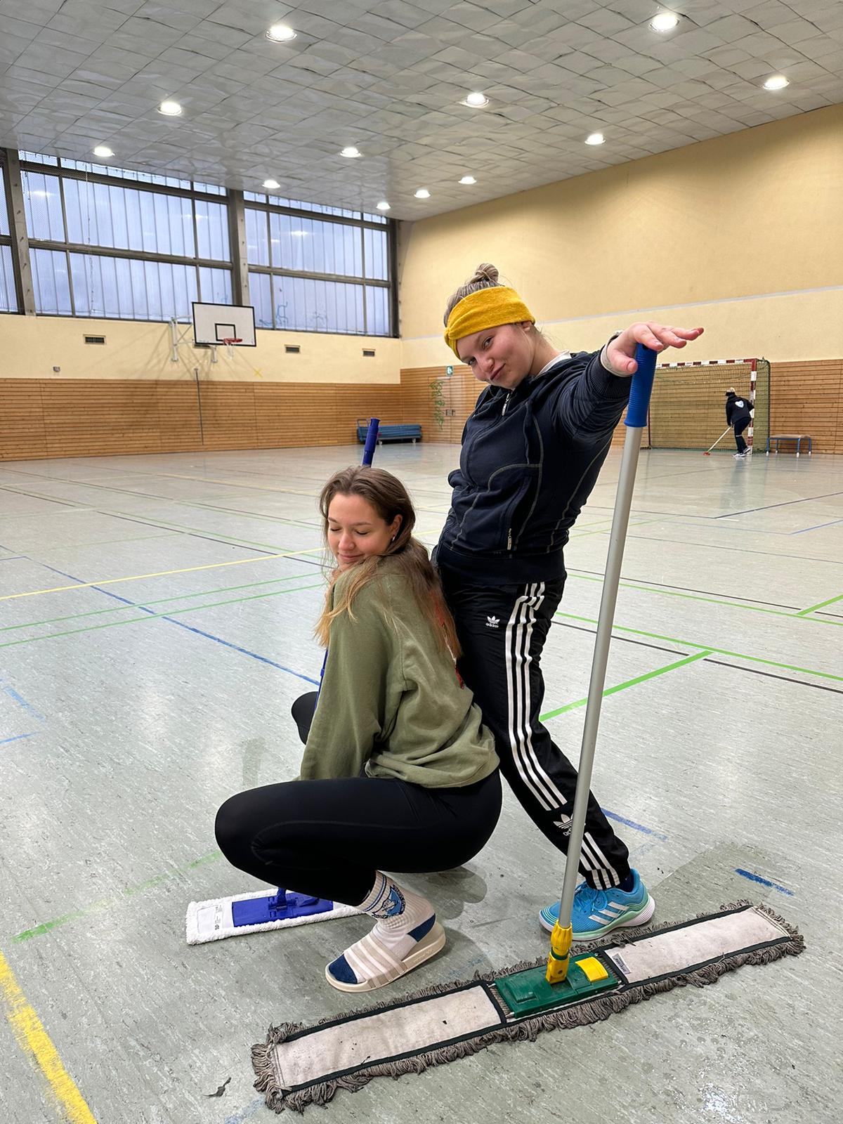 Als pünktlich zur Treffzeit die Halle betreten wurde, waren wir uns nicht sicher, ob draußen vielleicht sogar wärmer als drinnen ist, denn in der Halle war definitiv Winter angesagt. Nichts desto trotz wurde an der Spieltagroutine festgehalten, nur in langen Klamotten. Zu dieser gehört in der Halle an der Grünauer Welle das Wischen des Hallenbodens, damit man wenigstens zum Spieltag nicht die ganze Zeit nur durch die Gegend rutscht.