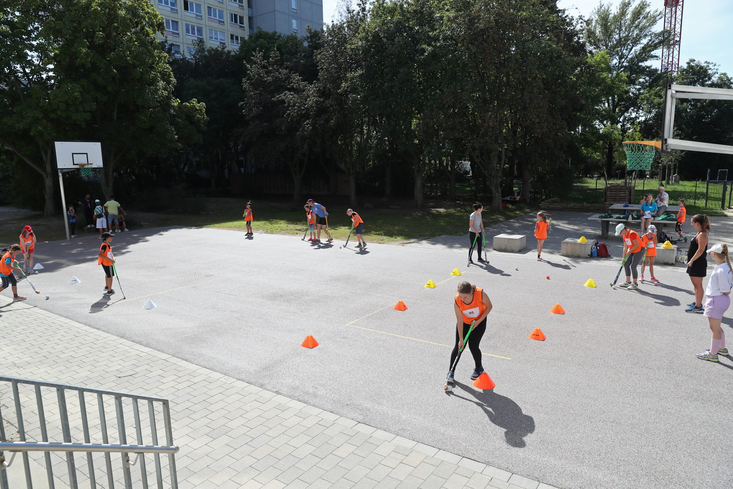 Bei hochsommerlichen Wetter brachten Anna, Jana, Lennard, Leo, Sandra und Jeanette die jungen Talente zum Schwitzen. Wer sich beim Slalom und Passen besonders gut anstellte, wurde vom Stadtsportbund zum Training beim HCLG eingeladen. Aber auch die verborgenen Talente bekommen von uns natürlich eine Einladung zum Schnuppertraining. Insgesamt war es eine schöne und sehr gut organisierte Veranstaltung. Wir hoffen, dass unsere Nachwuchsmannschaften schon bald neue Mitspielerinnen begrüßen können.