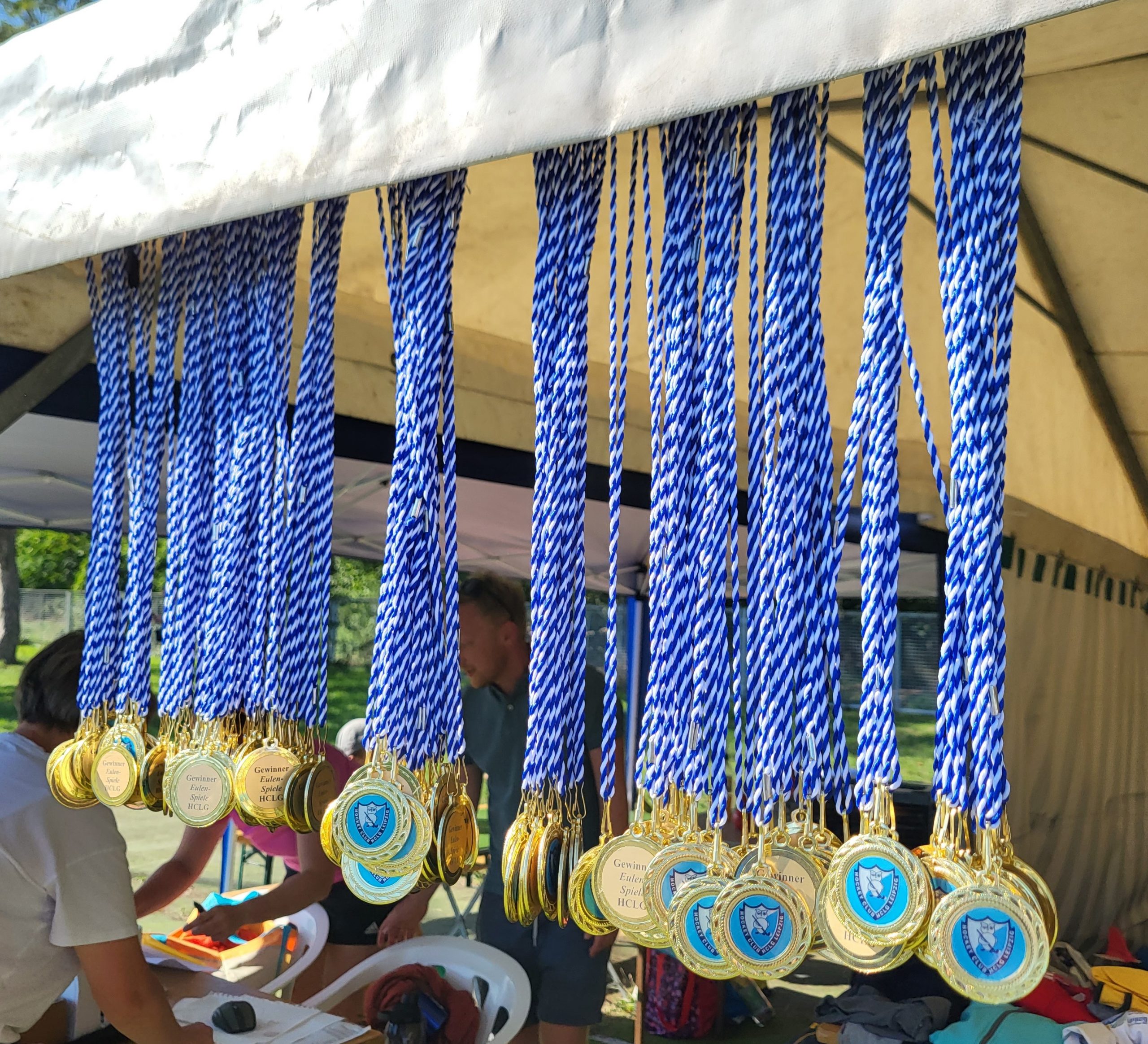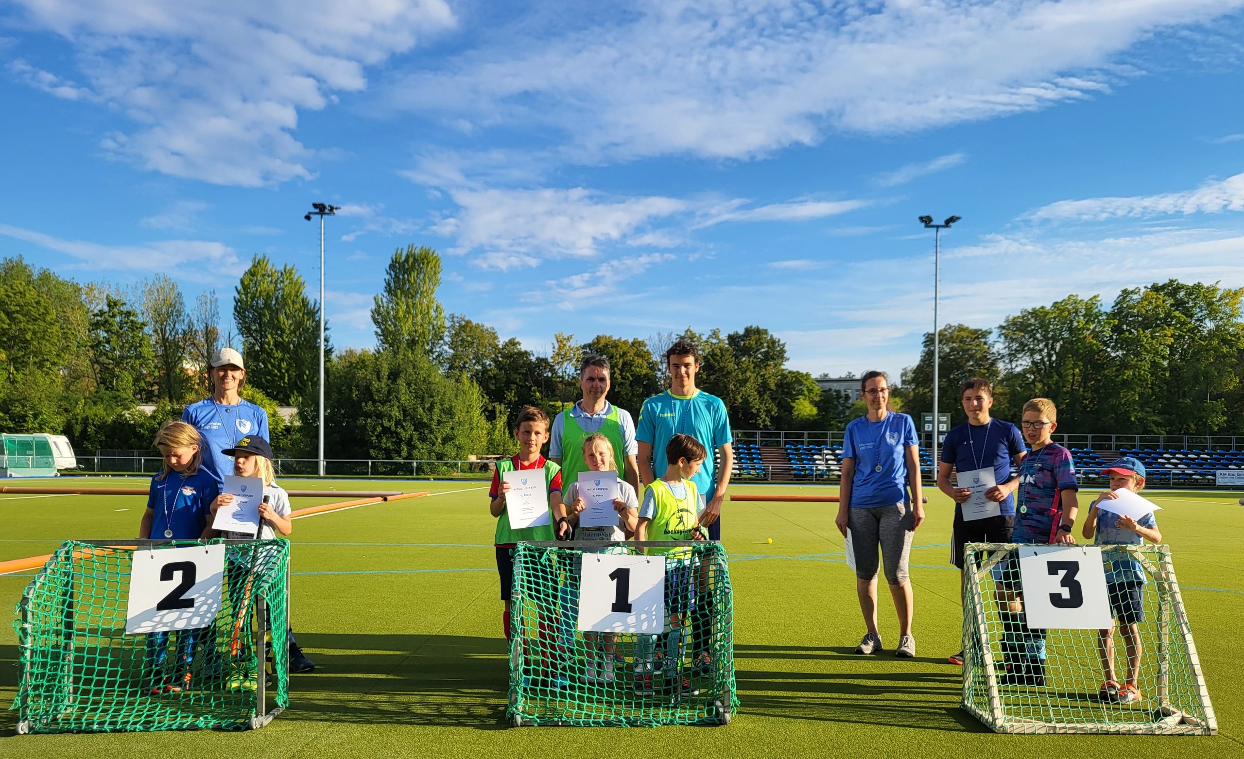 … dann ist Vereinsfest beim HC Lindenau Grünau und die Resonanz war diesmal überwältigend! An die 250 große und kleine, junge und alte, aktive und ehemalige Hockeyfreunde haben den Weg auf unser Vereinsgelände gefunden, um mit uns 30 Jahre HCLG (siehe Artikel weiter unten) und 35 Jahre DDR-Meistermannschaft zu feiern. Chef-Organisatorin Claudia Huxhagen und ihr Team haben ein buntes Programm mit vielen Aktionen auf die Beine gestellt, so dass nie Langeweile aufkam. Schon traditionell fand das Hockey-Mixed-Turnier statt – diesmal mit zwölf Teams, die auf dem Kunstrasen um Tore und Siege kämpften. Belohnt wurden alle aktiven Hockeyeulen zum ersten Mal mit Medaillen und Urkunden für die drei Erstplatzierten. Der Dank geht hier an alle kleinen (und größeren) Schiedsrichter, die die Spiele souverän geleitet haben, und vor allem an Steffen „Lippi“ Lippmann, der dank handwerklichem Geschick noch für neue Minitore gesorgt hat. Neben dem Rasen waren das Basteln – diesmal wunderschöne Eulenlaternen wie immer unter liebevoller Anleitung unseres Elternhockeyteams – und das Kinderschminken der absolute Renner vor allem bei den kleinen Hockeyeulen. Aber auch Tombola, Second-Hand-Markt für Hockey-Equipment und Kuchenbasar waren hoch frequentiert und spülten Spenden in die Vereinskasse. Unumstrittener Sieger als „Einnahmequelle“ war aber wieder mal der Cocktailwagen unter Regie von Claudia Höhne, der bis zum Schluss stets dicht belagert war und dessen Einnahmen komplett an den HCLG fließen.
