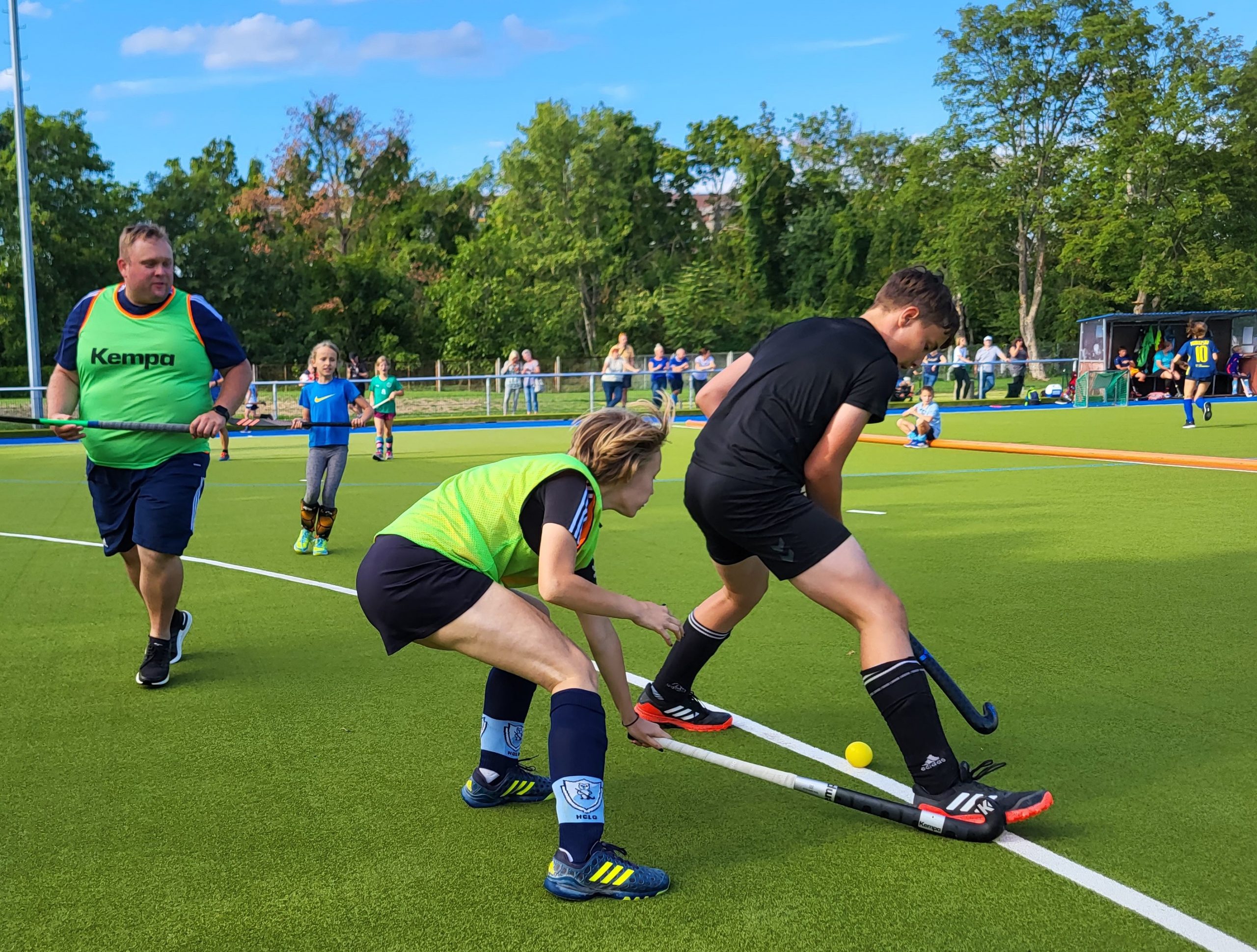 Absolutes Highlight am Nachmittag aber war das Hockeyspiel der HCLG-Legenden vom DDR-Meister 1987 gegen eine Vereinsauswahl (siehe auch den separaten Bericht von Mitorganisator Andreas Rewald im Kasten). Zahlreiche Spieler von jung bis etwas älter ließen es sich nicht nehmen, gegen die „Oldies“ anzutreten und so hatte Coach Manuel Küfner, alle Hände voll zu tun, die Ein- und Auswechslungen zu koordinieren. Viel konzentrierter und organisierter lief das auf Seiten der Alt-Meister unter Regie von Manfred Schaarschmidt und Jörg „Zwieback“ Wiebicke. Und auch auf dem Feld zeigten diese, was noch so in ihnen steckt und gewannen – nach hartem Kampf – knapp, aber verdient mit 3:2.