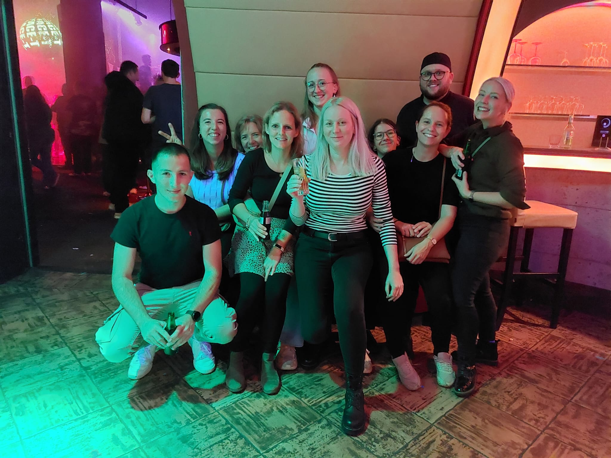 Im A&O Hostel, wo gefühlt auch jede andere Mannschaft vom Turnier war, checkten wir nach unserer Siegesserie ein und zu unserer Überraschung sehen wir anscheinend alle so jung aus, dass Nick gefragt wurde, ob „seine Schülerinnen Alkohol trinken dürfen“ und ich glaube, wir wissen alle wie die Antwort auf diese Frage lautet. Gesagt, getan nach dem Check-in wurde Pizza bestellt und sich auf den einzelnen Zimmern fertig gemacht. Nachdem wir gemeinsam auf dem Gang die Pizza verspeist hatten, ging es zur Turnierparty. Es wurde ordentlich getanzt und das ein oder andere Getränk getrunken. Wir mussten auch nicht allzu zeitig ins Bett, weil wir durch unsere gute Platzierung nicht direkt früh spielen mussten. Das war auch gut so, so konnten wir noch ein Getränk an der Bar im Hostel trinken.