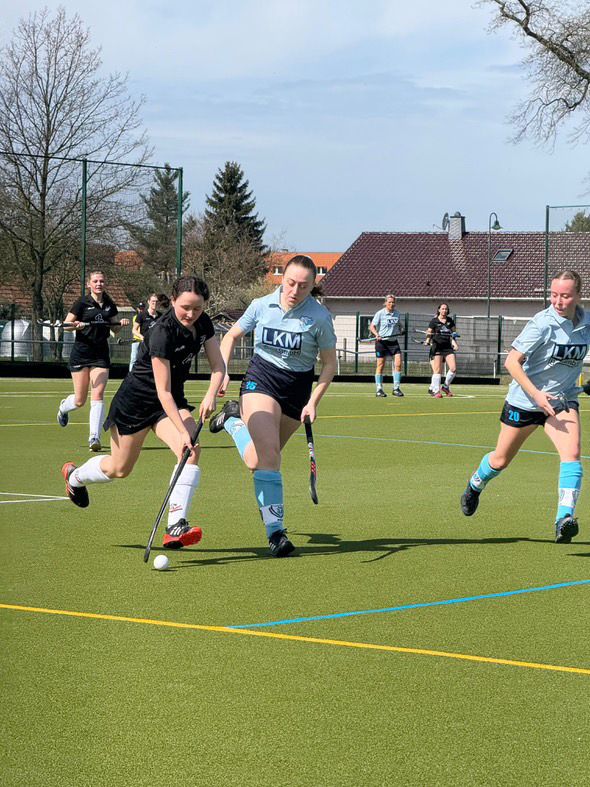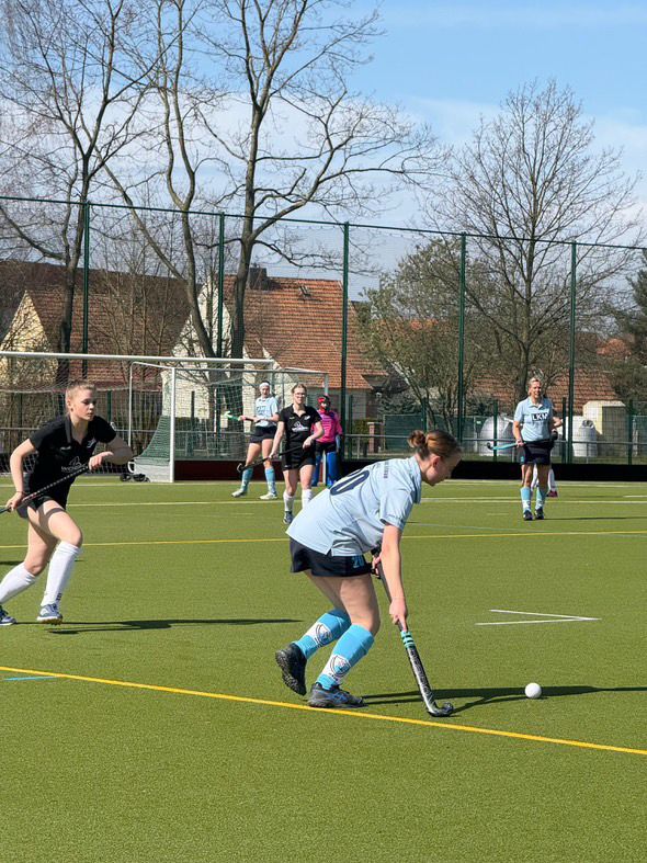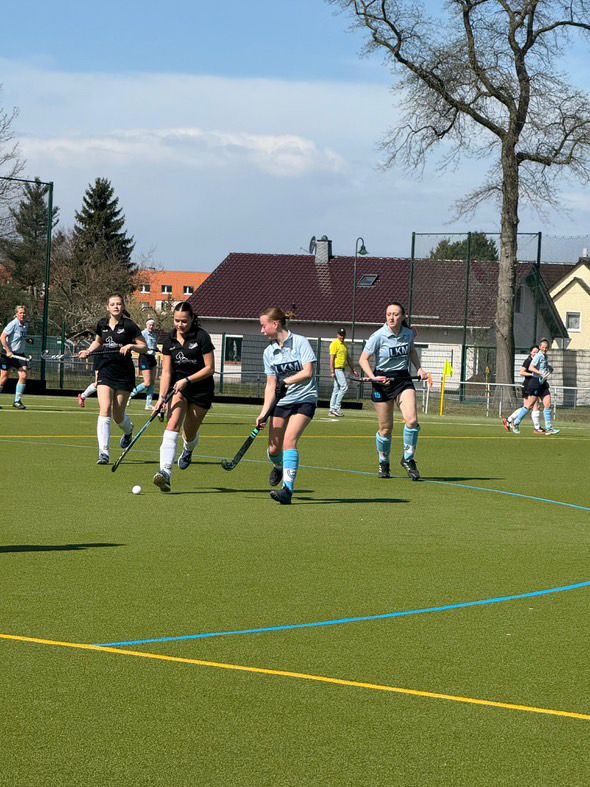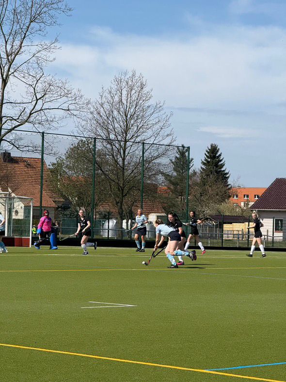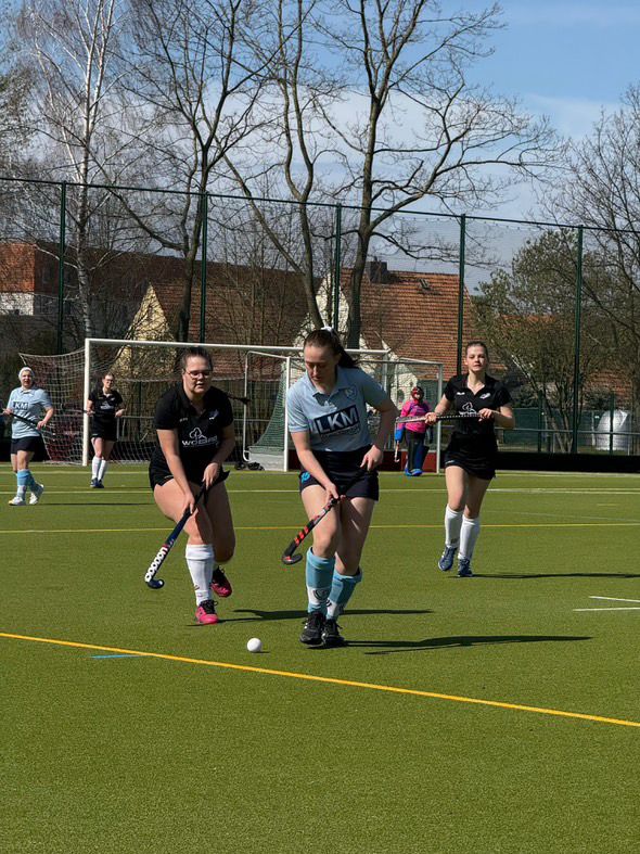 Von Anfang an war klar, Chemnitz wollte zeigen, warum sie bis zu letzt noch eine Liga höher gespielt haben. Aber wir? Wir haben mutig dagegengehalten! Wir waren bissig, haben jeden Zweikampf angenommen und konnten uns immer wieder gute Chancen erspielen. Die Gastgeberinnen waren sichtlich überrascht, dass wir als Aufsteigerinnen aus der Verbandsliga so frech aufgetreten sind. Doch kurz vor dem Halbzeitpfiff kam der erste Nackenschlag. Chemnitz bekommt eine Strafecke zugesprochen und kann diese im zweiten Anlauf auch verwandeln. Richtig ärgerlich, weil wir bis dahin echt stark im Spiel waren.