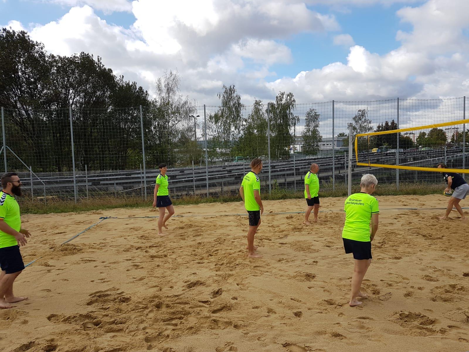 Dieses Mal war das Wetter sonnig, so dass auch die zweite Disziplin Beachvolleyball Freude machte. Wir gewannen alle 3 Spiele gegen Königswusterhausen, Neundorf und Bautzen II sehr knapp und mussten immer erst den 3.Satz zur Entscheidung nutzen.