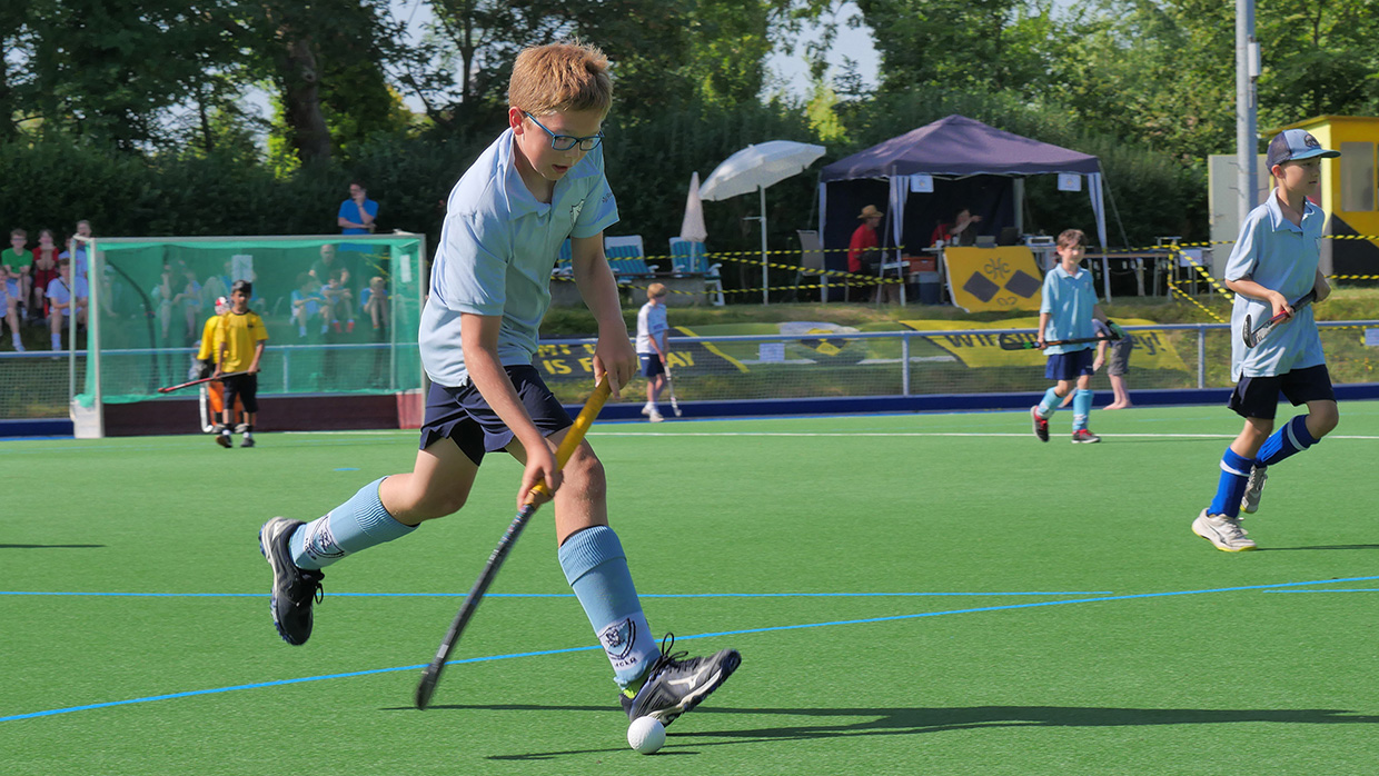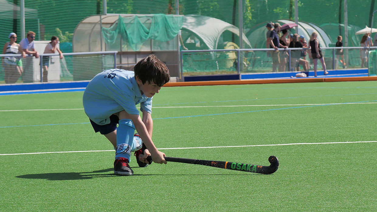Am Samstag trafen sich rund 45 Kinder der U8- und U10-Mannschaften des HCLG auf dem Feld zu einem Turnier bei strahlendem Sonnenschein. Vor allem die vielen neuen Spielerinnen und Spieler, die durch die erfolgreiche Werbung an Schulen in der Umgebung ihren Weg in unseren Verein gefunden haben, konnten sich hier erstmals bei einem Turnier auf dem Kunstrasen ausprobieren. 3 gegen 3 oder 4 gegen 4 Kinder traten jeweils gegeneinander an und hatten sichtlich Spaß, ihre neu erlernten Fähigkeiten einzusetzen und fleißig Tore zu schießen. Auch abseits der Spielfelder konnten sie sich bei kleinen Wettkämpfen und Geschicklichkeitsspielen im Slalom, Torschießen und Wettlaufen messen. Als die Kräfte zu Ende gingen, erfrischten sich alle unter dem Rasensprenger. Zum Abschluss erhielten alle noch eine Medaille, die glücklich und stolz den Eltern präsentiert wurden.
