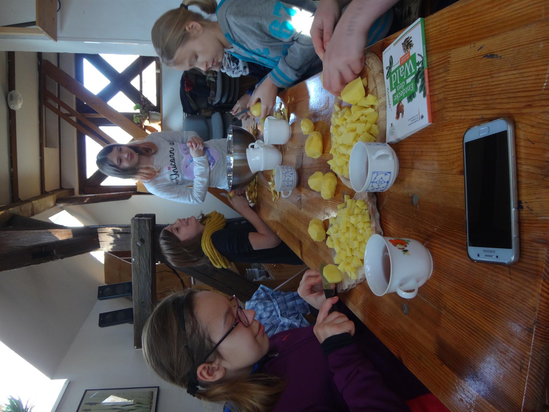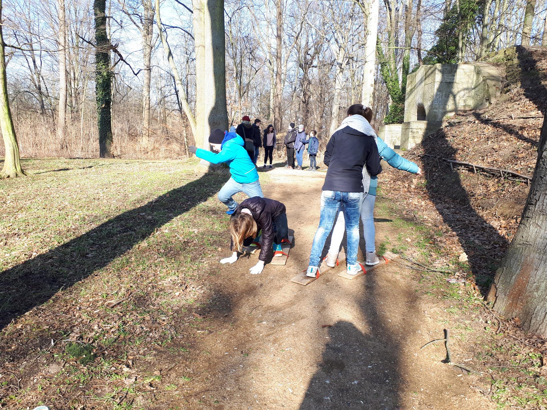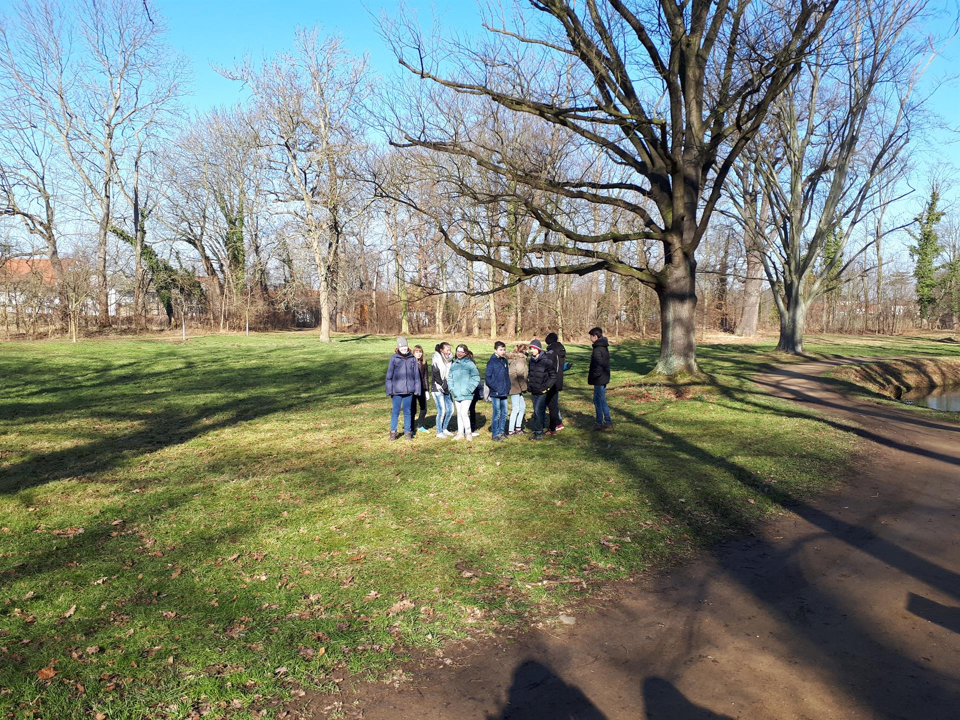 Treff 8.15 Uhr in warmen Sachen (trotzdem haben alle gefroren). Auf dem Plan für sie stand: Bahnfahrt bis zum Auenwald, Einweisung und Besprechung, Rätsel lösen und durch den Auenwald spazieren, Suppe kochen und Essen, Rückfahrt ins Camp, Fußball, schlafen oder Hockey, Abendbrot, Fasching, (Handyzeit von 18:45 – 19:15 Uhr)