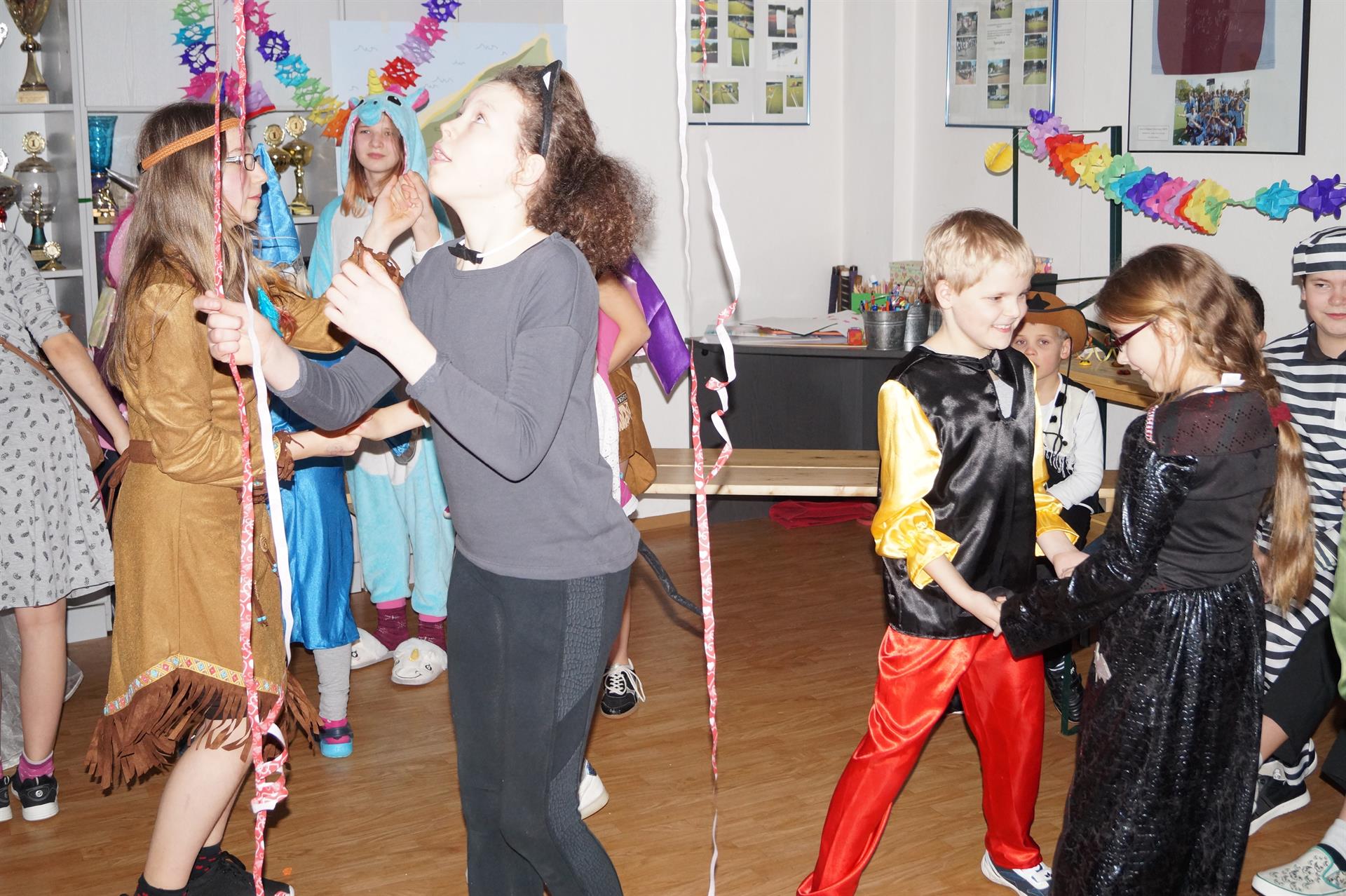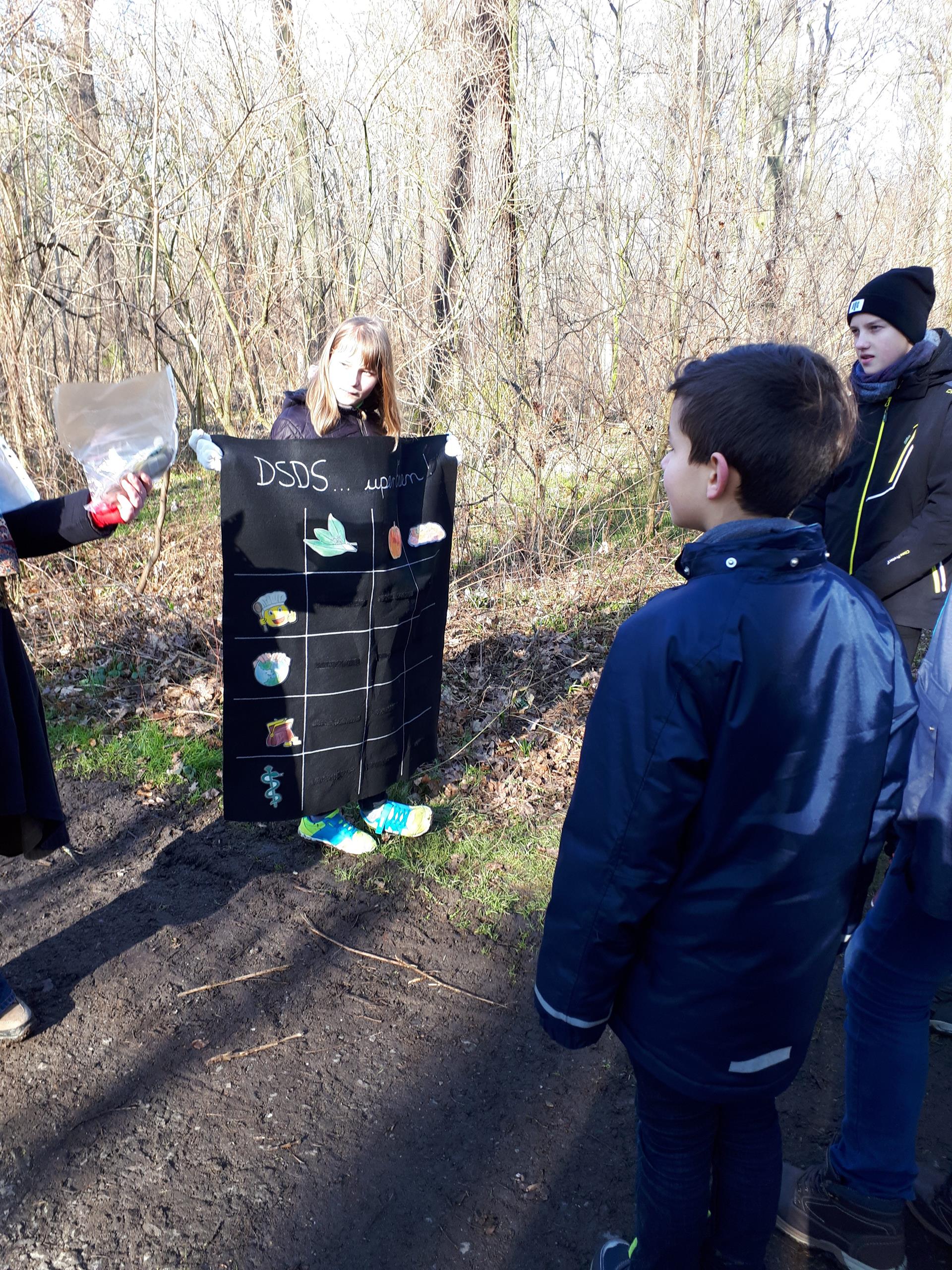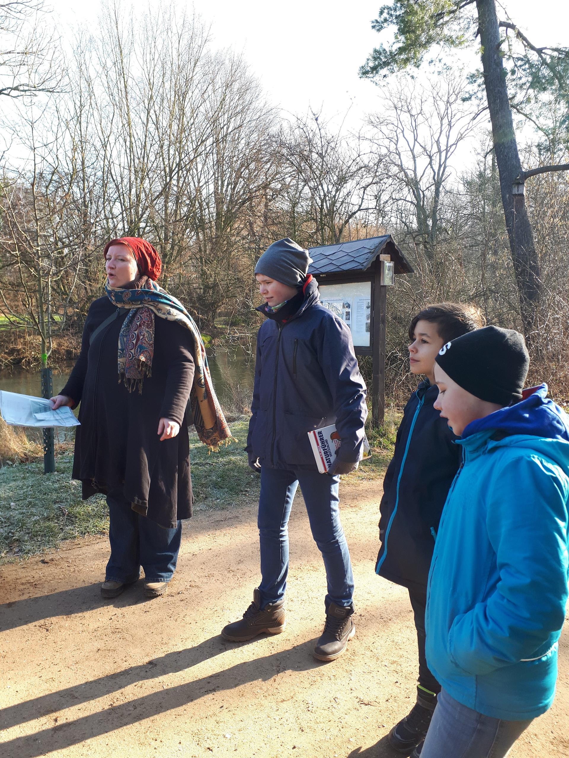 Treff 8.15 Uhr in warmen Sachen (trotzdem haben alle gefroren). Auf dem Plan für sie stand: Bahnfahrt bis zum Auenwald, Einweisung und Besprechung, Rätsel lösen und durch den Auenwald spazieren, Suppe kochen und Essen, Rückfahrt ins Camp, Fußball, schlafen oder Hockey, Abendbrot, Fasching, (Handyzeit von 18:45 – 19:15 Uhr)