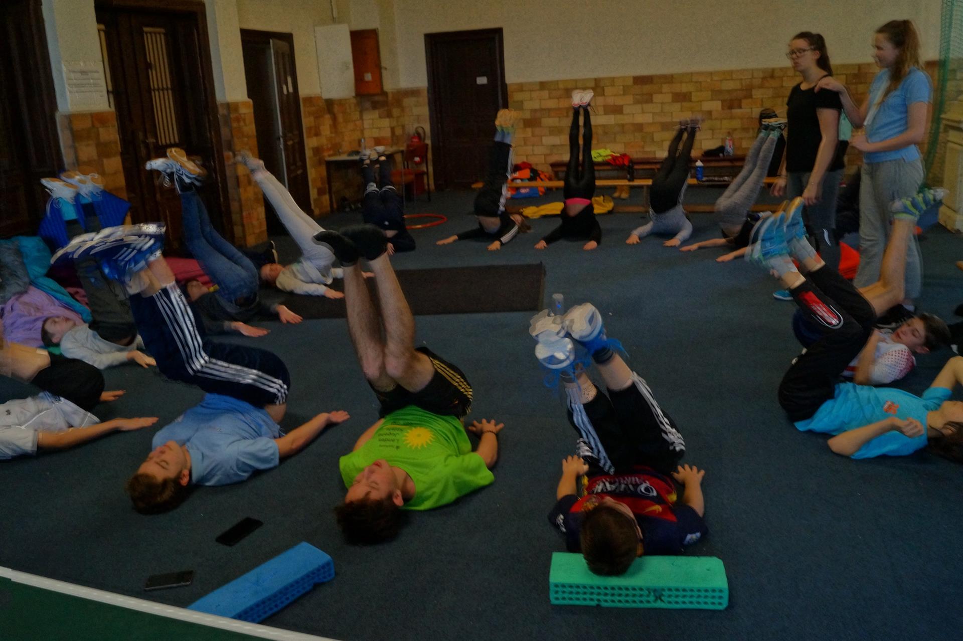 nach dem Frühstück – Joggen, nach 10 min Pause, Stabikreis in der Turnhalle, 14.30 Uhr Hockeytraining, vor dem Abendbrot Basteln