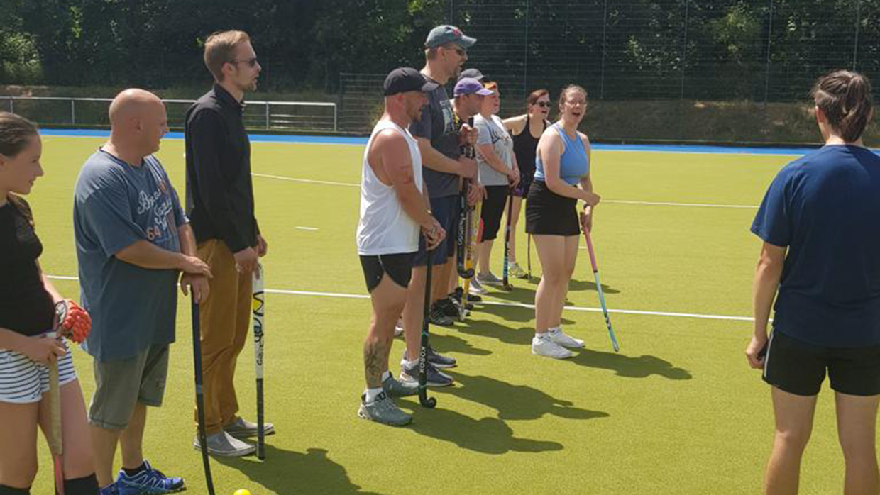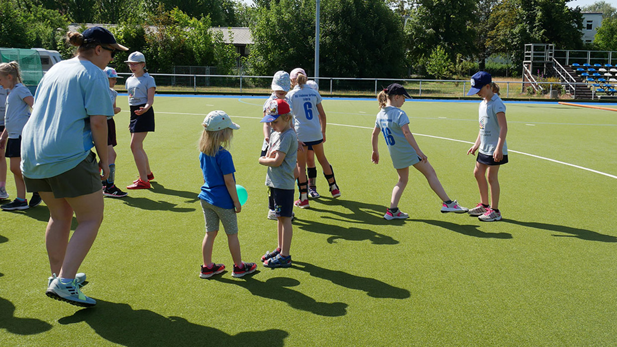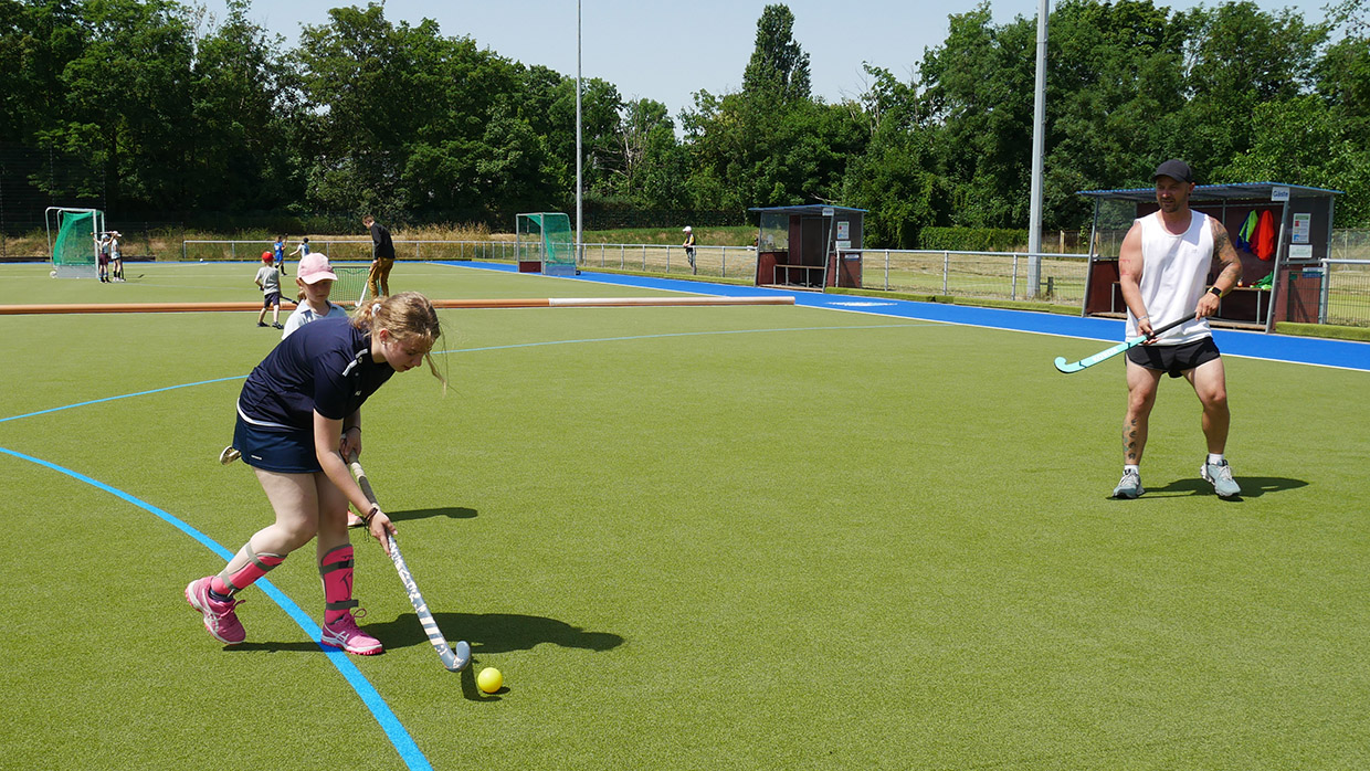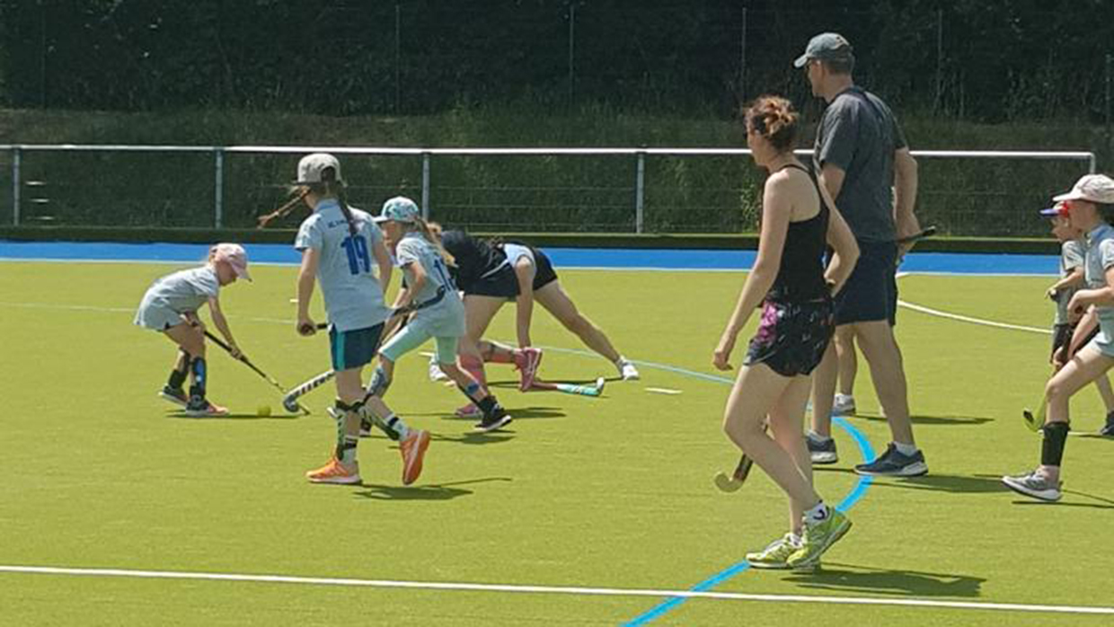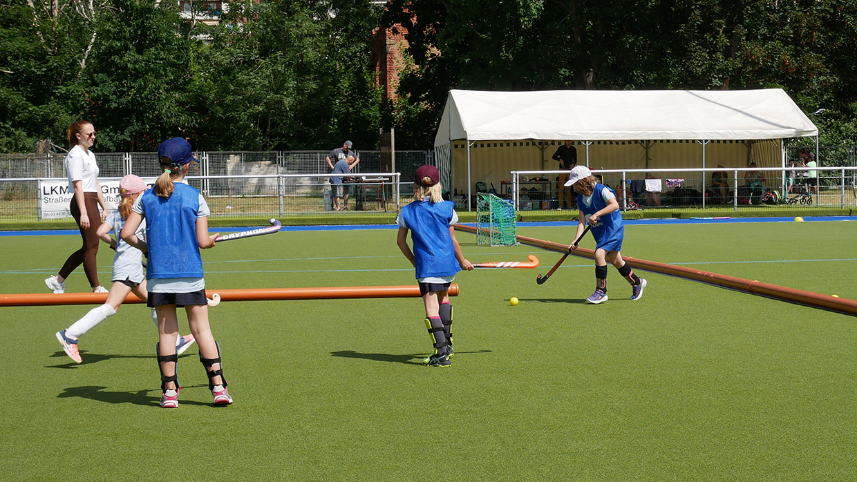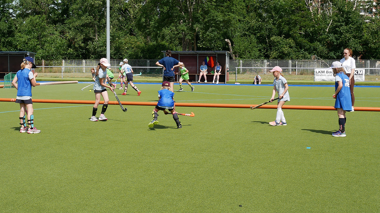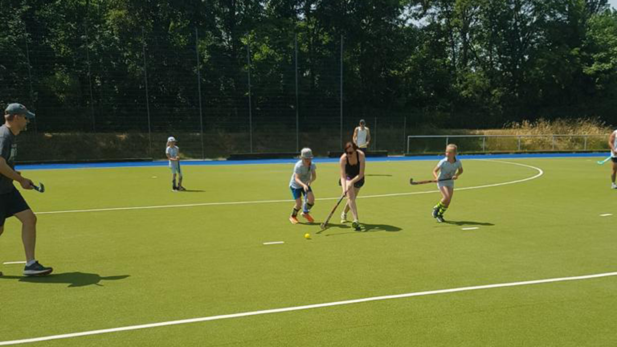 Am Samstag, dem 18. Juni 2022, haben die Mädels zusammen mit den Eltern einen tollen Spieltag auf dem Hockeyplatz erlebt, bei dem die heiße Sonne allen zu schaffen machte, aber zum Glück sorgte die Wasseranlage des Hockeyplatzes für ein wenig Abkühlung. Zuerst wurde mit den Trainern ein wenig Technik-Training geübt und die Eltern haben die ersten Versuche am Hockeyschläger unternommen. Das ging, überraschender Weise ganz gut. Hier haben die Eltern gemerkt, dass das Hockeyspiel gar nicht so einfach ist und was die Mädels so draufhaben. Danach wurden die verschiedensten Sportgeräte aus der Garage geholt und es gab einen harten Staffelwettbewerb bei dem sich die Mädels gegenseitig anspornten.