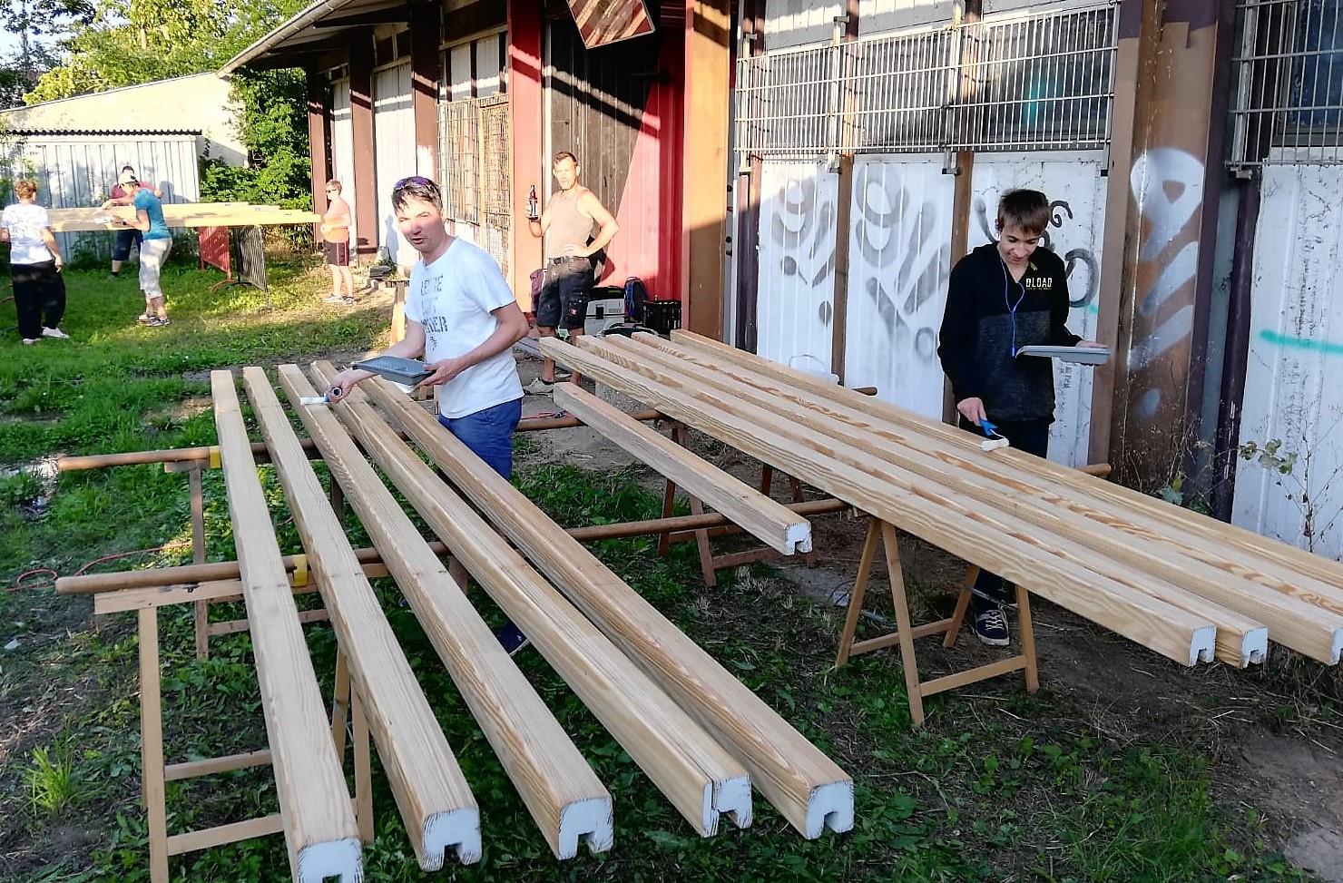 Noch tummeln sich alle Hockeyeulen auf dem grünen Rasen, aber schon jetzt läuft die Vorbereitung für die Hallensaison und so startete unsere Hockeybande zu einer Reise in die „Beautyfarm“. In der Holzwerkstatt von Benny Kames´ Betrieb gab es zuerst eine „Rundum-Massage“, wobei 2mm der spröden und rissigen Haut abgehobelt wurden (siehe Fotos), danach wurden noch die Kanten schön rund gefräst. Zurück auf unserem Hockeyplatz erhielt jede Bande noch den letzten Feinschliff und danach ein cooles HCLG-Tattoo. Zum Abschluss gab es noch eine Wellnessbehandlung: jede Bande wurde rundum neu lackiert und sah sofort mindestens 20 Jahre jünger aus! Zurück in der Sporthalle Garskestraße warten die Banden nun sehnsüchtig auf unsere Hockeyknirpse, mit denen sie dann wieder viel Spaß beim Hockeyspielen haben werden.